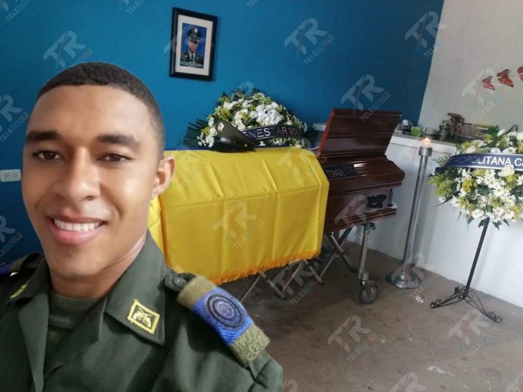 El cuerpo del patrullero de la Policía, Carlos Zuñiga Tovar, es velado en el barrio Luis Miguel, en El Roble, Sucre, quien falleció en extrañas circunstancias en un CAI de Cartagena, dónde prestaba su servicio como policía.