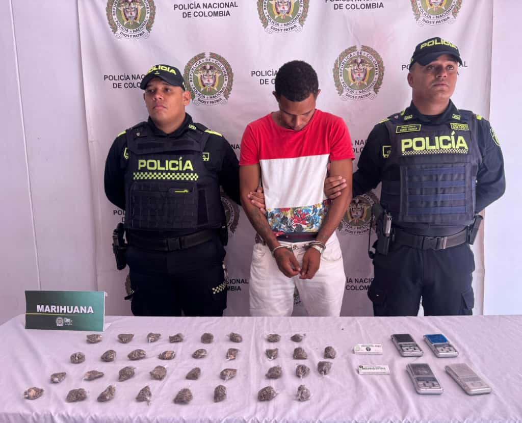 El procedimiento de captura se realizó en la carrera 12 con calle 9, barrio Las Brisas del mencionado municipio, cuando los uniformados de la Policía Atlántico hacían labores de patrullaje y observan una persona caminando por este sector, quien al ver la presencia de la Policía, toma una actitud nerviosa, y al momento de solicitarle un registro, se le halla en su poder una bolsa trasparente con 113 gramos de marihuana, 5 gramos de base de coca, 4 grameras y 2 cajas de papel para armar cigarrillos, los cuales fueron dejados a disposición de la Fiscalía.