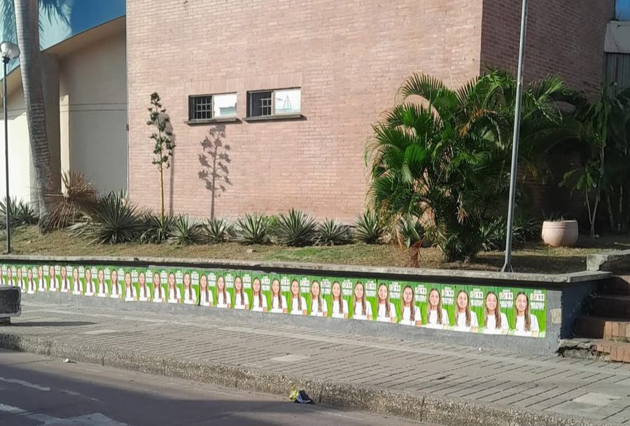 Los afiches pegados de manera arbitraria pertenecen a la campaña de Ana Maria Garcia Soto, quien además de invadir el templo cultural irrespeta la edificación con la contaminación visual.