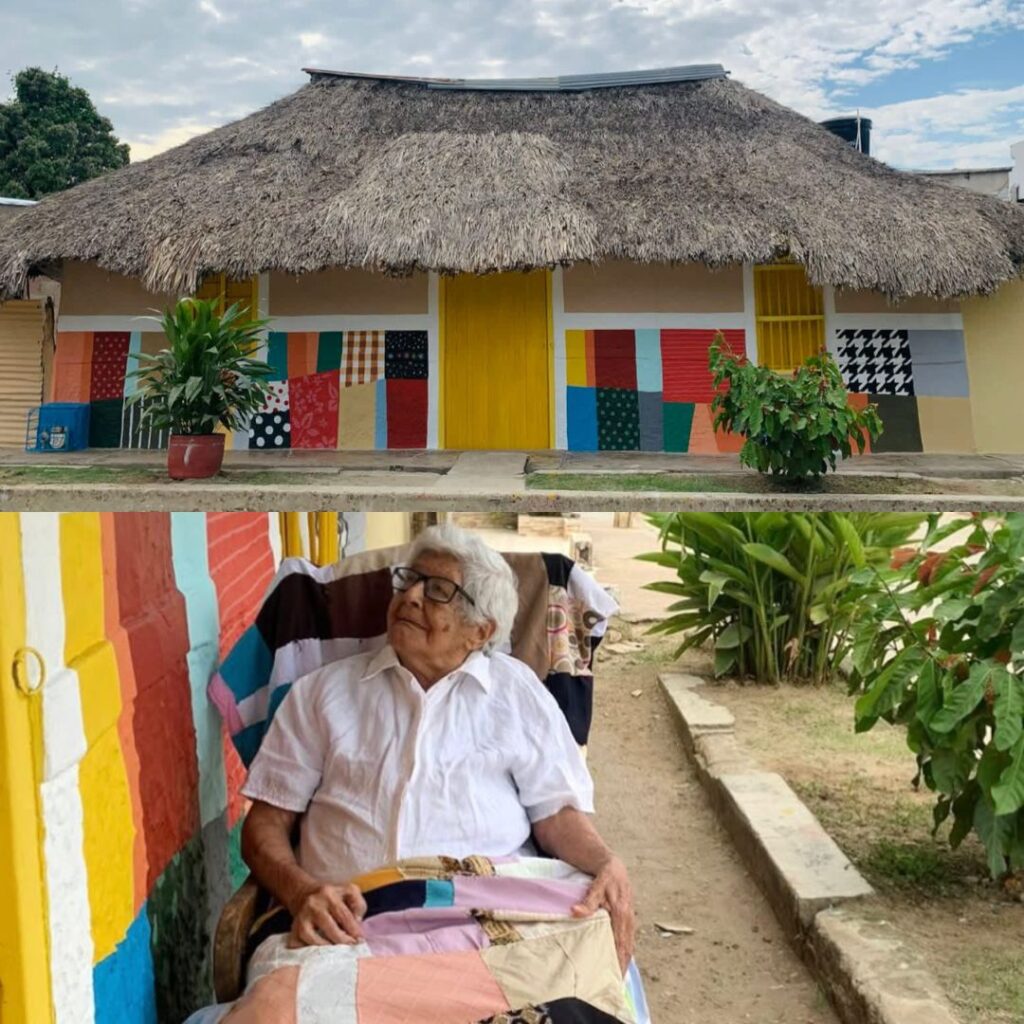 “Son muchas las historias que se guardan en cada una de las viviendas que intervenimos. Recuerdo varias, como la de Delfina, una señora de 103 años de edad que se la pasó toda la vida haciendo sobrecamas con retazos de telas. Yo la molestaba diciéndole que se había vuelto famosa después de los 100 años, ella se ría, era feliz de ver su casita decorada con el arte con el que sustentó varias generaciones. La gente se tomaba fotos con ella, la entrevistaban, esa casita guardaba mucho sentimiento. Un año y medio después de hacerle el mural falleció”, recordó Óscar con nostalgia.