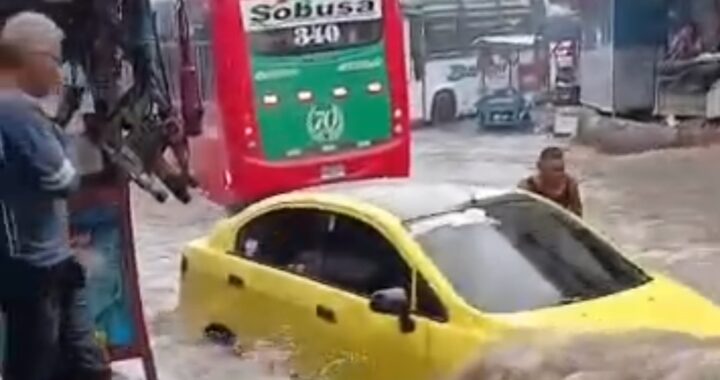 Taxi en arrastrado por las fuertes corrientes en Barranquilla